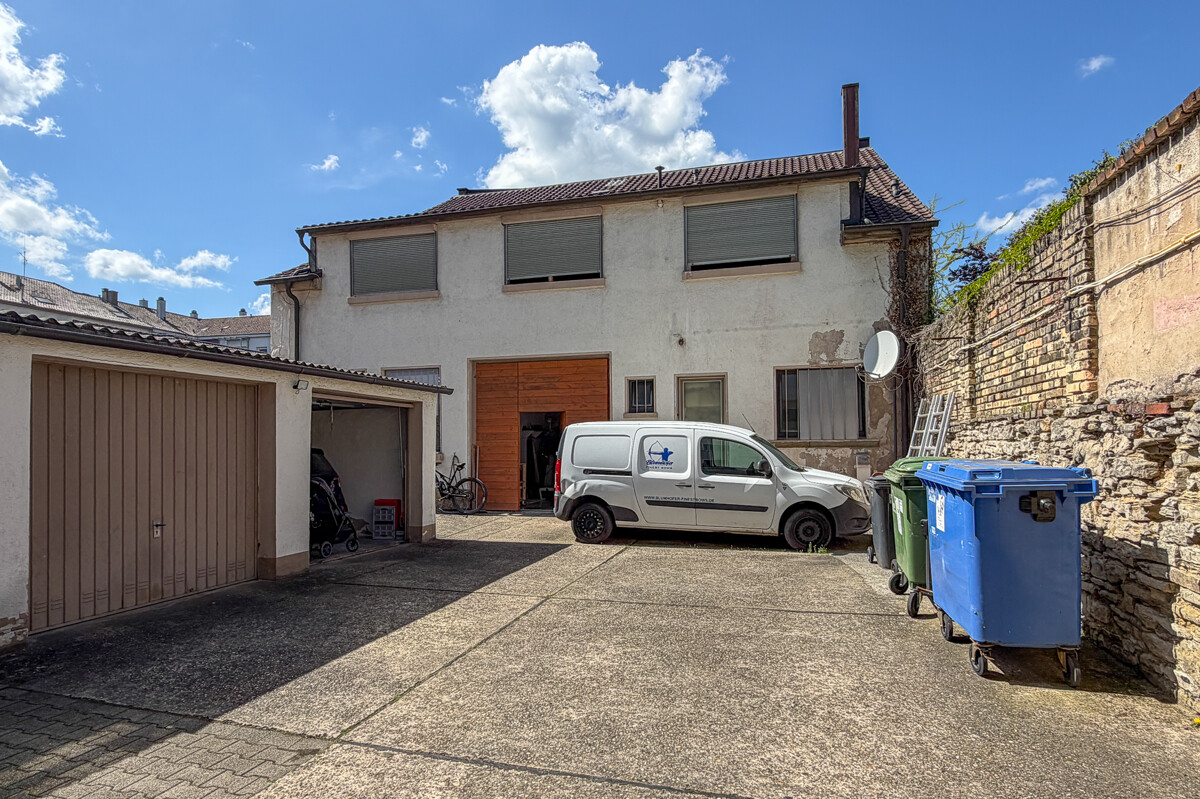 Im Innenhof befinden sich zwei Garagen sowie ein zusätzlicher Stellplatz. Darüber hinaus stehen ausreichend Abstellmöglichkeiten für Fahrräder sowie Flächen für Müllboxen zur Verfügung, was den praktischen Nutzen der Immobilie zusätzlich unterstreicht.